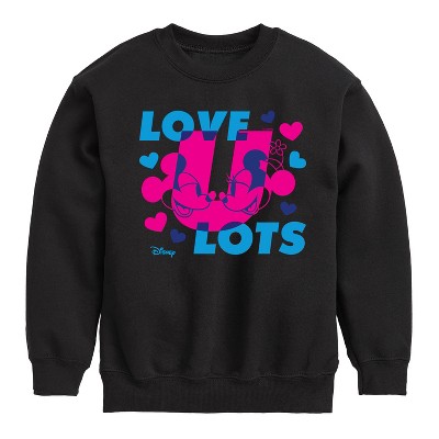 Disney - Love You Lots - Toddler & Youth Crewneck Fleece Sweatshirt - Add a touch of magic to your wardrobe with this graphic apparel featuring iconic Disney designs. Showcasing beloved characters and classic imagery, each piece combines nostalgic charm with modern style—perfect for Disney fans of all ages. Whether you're headed to the parks or just adding whimsy to your everyday look, these graphics bring the magic to life.