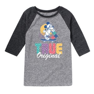 Disney - Mickey & Friends - True Original - Skater Mickey - Toddler And Youth Raglan Graphic T-Shirt - Add a touch of magic to your wardrobe with this graphic apparel featuring iconic Disney designs. Showcasing beloved characters and classic imagery, each piece combines nostalgic charm with modern style—perfect for Disney fans of all ages. Whether you're headed to the parks or just adding whimsy to your everyday look, these graphics bring the magic to life.