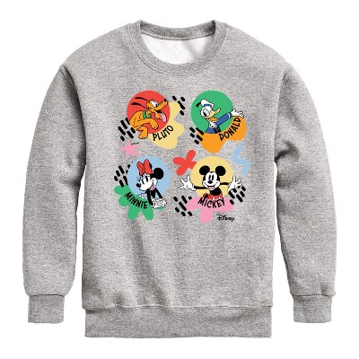 Boys' Disney Mickey, Minnie, Goofy, Donald Duck, Daisy & Pluto Photo Graphic Long Sleeve Fleece Sweatshirt - Athletic Heather - Small