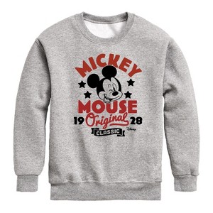 Disney - Mickey Mouse - 1928 Original & Classic - Youth Crewneck Fleece Sweatshirt - Add a touch of magic to your wardrobe with this graphic apparel featuring iconic Disney designs. Showcasing beloved characters and classic imagery, each piece combines nostalgic charm with modern style—perfect for Disney fans of all ages. Whether you're headed to the parks or just adding whimsy to your everyday look, these graphics bring the magic to life.