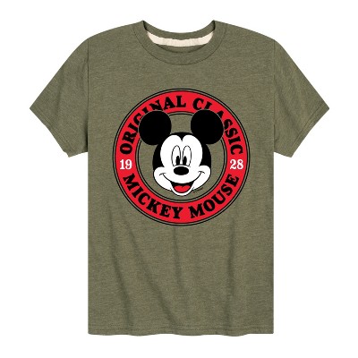 Boys' Disney Mickey Mouse Original Badge Short Sleeve Graphic T-Shirt - Heather Military Green - Large