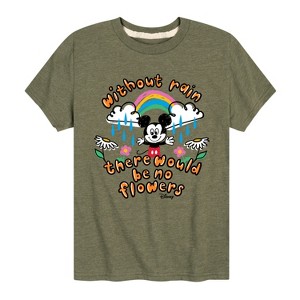 Disney - Mickey Mouse - Without Rain, No Flowers - Youth Short Sleeve Graphic T-Shirt - Add a touch of magic to your wardrobe with this graphic apparel featuring iconic Disney designs. Showcasing beloved characters and classic imagery, each piece combines nostalgic charm with modern style—perfect for Disney fans of all ages. Whether you're headed to the parks or just adding whimsy to your everyday look, these graphics bring the magic to life.
