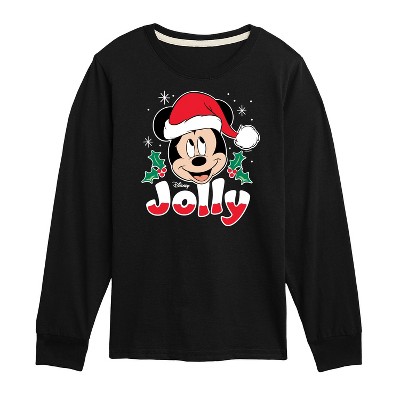 Boys' Disney Mickey, Pluto, & Goofy Gift Wrapping Crew Christmas Long Sleeve Graphic T-Shirt - Black - X-Large