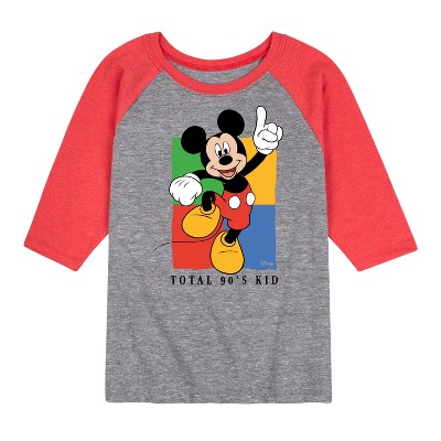 Mickey & Friends - Mickey Silhouette - Toddler And Youth Raglan Graphic T-Shirt - Add a touch of magic to your wardrobe with this graphic apparel featuring iconic Disney designs. Showcasing beloved characters and classic imagery, each piece combines nostalgic charm with modern style—perfect for Disney fans of all ages. Whether you're headed to the parks or just adding whimsy to your everyday look, these graphics bring the magic to life.