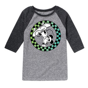 Disney - Mickey Skateboarding Checkered Circle - Toddler And Youth Raglan Graphic T-Shirt - Add a touch of magic to your wardrobe with this graphic apparel featuring iconic Disney designs. Showcasing beloved characters and classic imagery, each piece combines nostalgic charm with modern style—perfect for Disney fans of all ages. Whether you're headed to the parks or just adding whimsy to your everyday look, these graphics bring the magic to life.