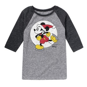 Disney - Mickey Skating Christmas - Toddler & Youth Raglan Graphic T-Shirt - Add a touch of magic to your wardrobe with this graphic apparel featuring iconic Disney designs. Showcasing beloved characters and classic imagery, each piece combines nostalgic charm with modern style—perfect for Disney fans of all ages. Whether you're headed to the parks or just adding whimsy to your everyday look, these graphics bring the magic to life.