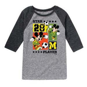Disney - Mickey Soccer - Toddler & Youth Raglan Graphic T-Shirt - Add a touch of magic to your wardrobe with this graphic apparel featuring iconic Disney designs. Showcasing beloved characters and classic imagery, each piece combines nostalgic charm with modern style—perfect for Disney fans of all ages. Whether you're headed to the parks or just adding whimsy to your everyday look, these graphics bring the magic to life.