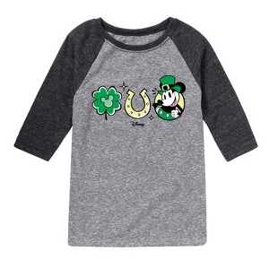 Disney - Mickey St Patricks Icons - Toddler And Youth Raglan Graphic T-Shirt - Add a touch of magic to your wardrobe with this graphic apparel featuring iconic Disney designs. Showcasing beloved characters and classic imagery, each piece combines nostalgic charm with modern style—perfect for Disney fans of all ages. Whether you're headed to the parks or just adding whimsy to your everyday look, these graphics bring the magic to life.