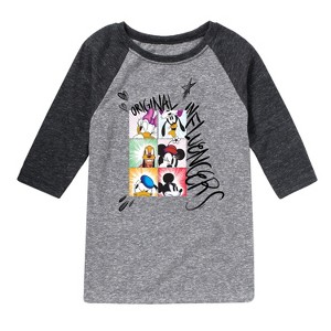 Mickey & Friends - Original Influencers - Toddler And Youth Raglan Graphic T-Shirt - Add a touch of magic to your wardrobe with this graphic apparel featuring iconic Disney designs. Showcasing beloved characters and classic imagery, each piece combines nostalgic charm with modern style—perfect for Disney fans of all ages. Whether you're headed to the parks or just adding whimsy to your everyday look, these graphics bring the magic to life.