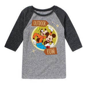 Disney - Outdoor Fun - Toddler & Youth Raglan Graphic T-Shirt - Add a touch of magic to your wardrobe with this graphic apparel featuring iconic Disney designs. Showcasing beloved characters and classic imagery, each piece combines nostalgic charm with modern style—perfect for Disney fans of all ages. Whether you're headed to the parks or just adding whimsy to your everyday look, these graphics bring the magic to life.