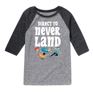 Disney - Peter Pan - Direct to Never Land - Toddler And Youth Raglan Graphic T-Shirt - Add a touch of magic to your wardrobe with this graphic apparel featuring iconic Disney designs. Showcasing beloved characters and classic imagery, each piece combines nostalgic charm with modern style—perfect for Disney fans of all ages. Whether you're headed to the parks or just adding whimsy to your everyday look, these graphics bring the magic to life.