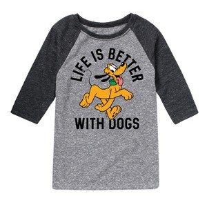 Mickey & Friends - Pluto Life Is Better With Dogs - Toddler And Youth Raglan Graphic T-Shirt - Add a touch of magic to your wardrobe with this graphic apparel featuring iconic Disney designs. Showcasing beloved characters and classic imagery, each piece combines nostalgic charm with modern style—perfect for Disney fans of all ages. Whether you're headed to the parks or just adding whimsy to your everyday look, these graphics bring the magic to life.