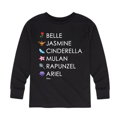 Disney Emoji - Princess Girl Talk - Toddler And Youth Long Sleeve Graphic T-Shirt - Add a touch of magic to your wardrobe with this graphic apparel featuring iconic Disney designs. Showcasing beloved characters and classic imagery, each piece combines nostalgic charm with modern style—perfect for Disney fans of all ages. Whether you're headed to the parks or just adding whimsy to your everyday look, these graphics bring the magic to life.