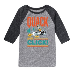 Disney - Quack And Click - Toddler & Youth Raglan Graphic T-Shirt - Add a touch of magic to your wardrobe with this graphic apparel featuring iconic Disney designs. Showcasing beloved characters and classic imagery, each piece combines nostalgic charm with modern style—perfect for Disney fans of all ages. Whether you're headed to the parks or just adding whimsy to your everyday look, these graphics bring the magic to life.