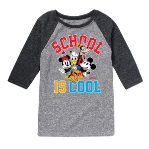 Mickey & Friends - School Is Cool - Youth Raglan Graphic T-Shirt - Add a touch of magic to your wardrobe with this graphic apparel featuring iconic Disney designs. Showcasing beloved characters and classic imagery, each piece combines nostalgic charm with modern style—perfect for Disney fans of all ages. Whether you're headed to the parks or just adding whimsy to your everyday look, these graphics bring the magic to life.
