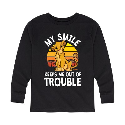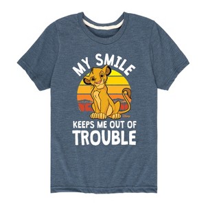 The Lion King - Simba - My Smile Keep Me Out of Trouble - Toddler & Youth Short Sleeve Graphic T-Shirt - Add a touch of magic to your wardrobe with this graphic apparel featuring iconic Disney designs. Showcasing beloved characters and classic imagery, each piece combines nostalgic charm with modern style—perfect for Disney fans of all ages. Whether you're headed to the parks or just adding whimsy to your everyday look, these graphics bring the magic to life.