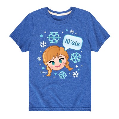 Disney Emoji - Sis Big Elsa - Toddler And Youth Short Sleeve Graphic T-Shirt - Add a touch of magic to your wardrobe with this graphic apparel featuring iconic Disney designs. Showcasing beloved characters and classic imagery, each piece combines nostalgic charm with modern style—perfect for Disney fans of all ages. Whether you're headed to the parks or just adding whimsy to your everyday look, these graphics bring the magic to life.