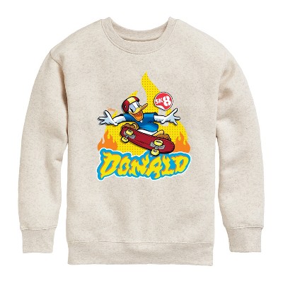 Disney - Standard Sports - SK8 with Donald - Youth Crewneck Fleece Sweatshirt - Add a touch of magic to your wardrobe with this graphic apparel featuring iconic Disney designs. Showcasing beloved characters and classic imagery, each piece combines nostalgic charm with modern style—perfect for Disney fans of all ages. Whether you're headed to the parks or just adding whimsy to your everyday look, these graphics bring the magic to life.