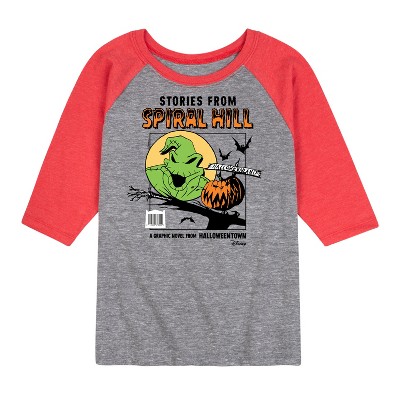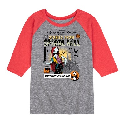 Disney - The Nightmare Before Christmas - Stories from Spiral Hill - Toddler & Youth Raglan Graphic T-Shirt - Add a touch of magic to your wardrobe with this graphic apparel featuring iconic Disney designs. Showcasing beloved characters and classic imagery, each piece combines nostalgic charm with modern style—perfect for Disney fans of all ages. Whether you're headed to the parks or just adding whimsy to your everyday look, these graphics bring the magic to life.