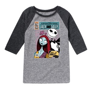 Disney - The Nightmare Before Christmas - Jack & Sally Since 1993 - Toddler & Youth Raglan Graphic T-Shirt - Add a touch of magic to your wardrobe with this graphic apparel featuring iconic Disney designs. Showcasing beloved characters and classic imagery, each piece combines nostalgic charm with modern style—perfect for Disney fans of all ages. Whether you're headed to the parks or just adding whimsy to your everyday look, these graphics bring the magic to life.