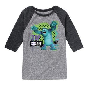 Monsters Inc. - Top Scarer - Toddler & Youth Raglan Graphic T-Shirt - Add a touch of magic to your wardrobe with this graphic apparel featuring iconic Disney designs. Showcasing beloved characters and classic imagery, each piece combines nostalgic charm with modern style—perfect for Disney fans of all ages. Whether you're headed to the parks or just adding whimsy to your everyday look, these graphics bring the magic to life.