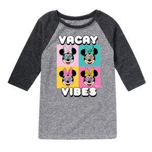 Mickey & Friends - Vacay Vibes - Toddler And Youth Raglan Graphic T-Shirt - Add a touch of magic to your wardrobe with this graphic apparel featuring iconic Disney designs. Showcasing beloved characters and classic imagery, each piece combines nostalgic charm with modern style—perfect for Disney fans of all ages. Whether you're headed to the parks or just adding whimsy to your everyday look, these graphics bring the magic to life.