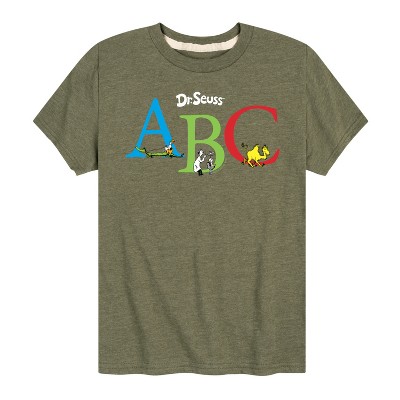 Dr. Seuss - ABC Book Characters - Youth Crewneck Fleece Sweatshirt - Our collection of graphic apparel featuring officially licensed Dr. Seuss characters brings the whimsy and wonder of Seussville straight into your wardrobe. From the mischievous Cat in the Hat to the stinky Grinch, each design showcases iconic characters and scenes from Dr. Seuss's timeless stories.