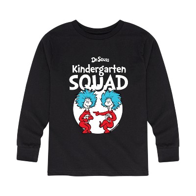 Dr. Seuss - Kindergarten Out Of This World - Youth Long Sleeve Graphic T-Shirt - Our collection of graphic apparel featuring officially licensed Dr. Seuss characters brings the whimsy and wonder of Seussville straight into your wardrobe. From the mischievous Cat in the Hat to the stinky Grinch, each design showcases iconic characters and scenes from Dr. Seuss's timeless stories.