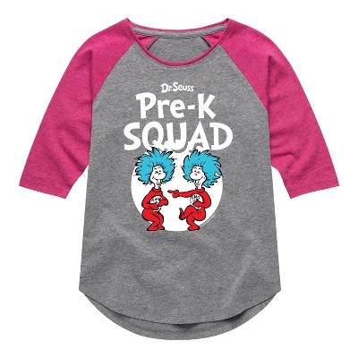Dr. Seuss - Pre-K Squad - Thing 1 and Thing 2 - Toddler and Youth Short Sleeve Graphic T-Shirt - Our collection of graphic apparel featuring officially licensed Dr. Seuss characters brings the whimsy and wonder of Seussville straight into your wardrobe. From the mischievous Cat in the Hat to the stinky Grinch, each design showcases iconic characters and scenes from Dr. Seuss's timeless stories.