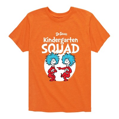 Dr. Seuss - 1st Grade Squad - Thing 1 and Thing 2 - Cat in the Hat - Youth Short Sleeve Graphic T-Shirt - Our collection of graphic apparel featuring officially licensed Dr. Seuss characters brings the whimsy and wonder of Seussville straight into your wardrobe. From the mischievous Cat in the Hat to the stinky Grinch, each design showcases iconic characters and scenes from Dr. Seuss's timeless stories.