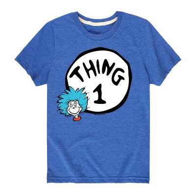 Dr. Seuss - Thing Two - Toddler And Youth Short Sleeve Graphic T-Shirt - Our collection of graphic apparel featuring officially licensed Dr. Seuss characters brings the whimsy and wonder of Seussville straight into your wardrobe. From the mischievous Cat in the Hat to the stinky Grinch, each design showcases iconic characters and scenes from Dr. Seuss's timeless stories.