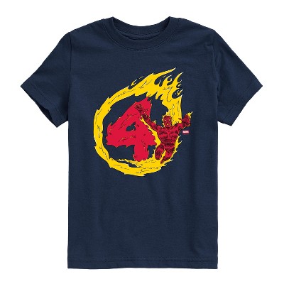 Boys' Fantastic Four Logo White Short Sleeve Graphic T-Shirt - Navy - Medium