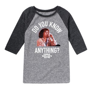 Ferris Bueller's Day Off - Do You Know Anything - Toddler And Youth Raglan Graphic T-Shirt - Embrace the day off with Ferris Bueller’s Day Off graphic apparel. Featuring Ferris, Cameron, and Sloane, these designs capture the carefree spirit and rebellious moments of this iconic teen classic.