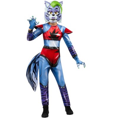 Five Nights at Freddy's is a survival horror video game that features the gamer as an underpaid night guard at Freddy Fazbear's Pizza - a family friendly food and arcade establishment where animatronics entertain the whole family. Now your child can become Chica, Freddy's free-roaming backup singer who becomes more and more erratic as you progress throughout the video game. Costume includes a bright yellow jumpsuit with "LET'S EAT" screen-printed on the front and includes yellow mittens. Plastic character half-mask has signature orange beak, black eyebrows, and three tufts of feathers on top.