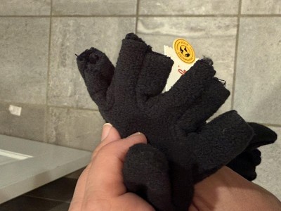 My husband grabbed these quickly and I took a quick glance when I got home and was shocked with how many little threads were exposed and loose on every single finger hole. One of the finger holes is already unraveling. There is no way this trash should be on the floor available for sale. I gave this 2 stars for the warmth of the fabric and the design. The craftsmanship is some of the worst I have seen in stores ever