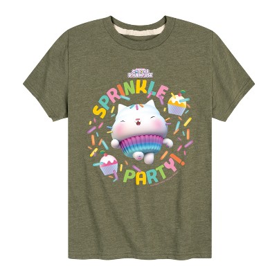 Boys' Gabby's Dollhouse A Meow Zing Short Sleeve Graphic T-Shirt - Heather Military Green - Medium