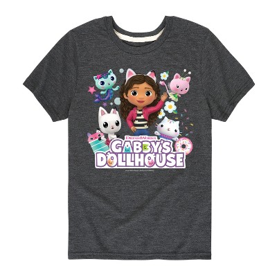 Boys' Gabby's Dollhouse Gdbm Chest Hit Short Sleeve Graphic T-Shirt - Heather Charcoal - Medium