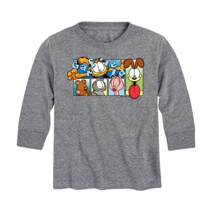Garfield - Character Grid - Toddler And Youth Long Sleeve Graphic T-Shirt - Bring the humor and laziness of the famous orange cat to your wardrobe with Garfield graphic apparel. Featuring Garfield, Odie, and Jon, these designs celebrate the iconic comic strip and its beloved characters.