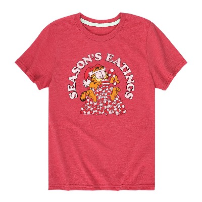 Garfield - Seasons Eatings - Toddler And Youth Long Sleeve Graphic T-Shirt - Bring the humor and laziness of the famous orange cat to your wardrobe with Garfield graphic apparel. Featuring Garfield, Odie, and Jon, these designs celebrate the iconic comic strip and its beloved characters.