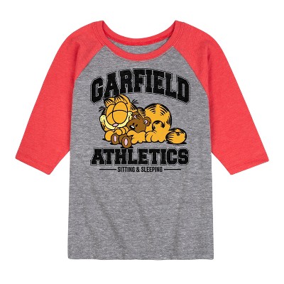 Garfield - Whatever - Toddler And Youth Raglan Graphic T-Shirt - Bring the humor and laziness of the famous orange cat to your wardrobe with Garfield graphic apparel. Featuring Garfield, Odie, and Jon, these designs celebrate the iconic comic strip and its beloved characters.