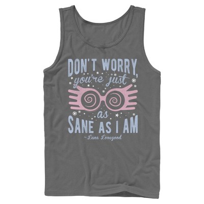 • Embrace your inner eccentric with this magically offbeat boys' t-shirt that is perfect for every occasion! Featuring Luna Lovegood's iconic quote: "Don’t Worry, You’re Just As Sane as I Am" and her Spectrespecs in distressed print across the front.