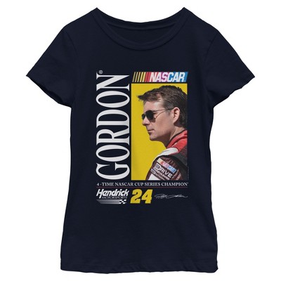 • Now you can take your fanhood from 0 to 60 in seconds with this new boys' t-shirt that is perfect for race day! Featuring the 4-Time NASCAR Cup Series Champion, Jeff Gordon, looking cool in shades, the iconic #24, his signature, and legendary auto racing company logos.