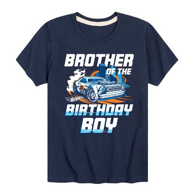 Hot Wheels - Brother Of Birthday Boy - Toddler And Youth Short Sleeve Graphic T-Shirt - Speed into bold style with Hot Wheels graphic apparel, featuring high-octane designs that showcase legendary cars like the Twin Mill, Bone Shaker, and other fan favorites. Each piece captures the adrenaline-pumping excitement of epic tracks, jaw-dropping stunts, and non-stop racing action. Perfect for fans of all ages who grew up launching cars off orange tracks and collecting miniature speed machines, this collection brings the thrill of Hot Wheels to your everyday look with energy, nostalgia, and unmistakable style.