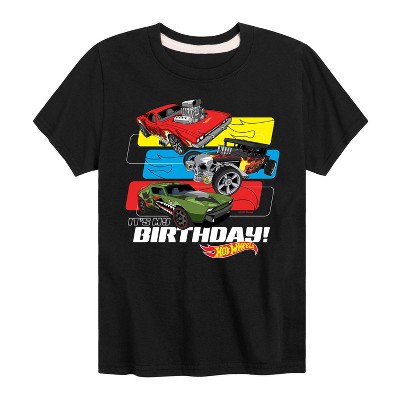 Hot Wheels - Going Big For My Birthday - Toddler And Youth Short Sleeve Graphic T-Shirt - Speed into bold style with Hot Wheels graphic apparel, featuring high-octane designs that showcase legendary cars like the Twin Mill, Bone Shaker, and other fan favorites. Each piece captures the adrenaline-pumping excitement of epic tracks, jaw-dropping stunts, and non-stop racing action. Perfect for fans of all ages who grew up launching cars off orange tracks and collecting miniature speed machines, this collection brings the thrill of Hot Wheels to your everyday look with energy, nostalgia, and unmistakable style.
