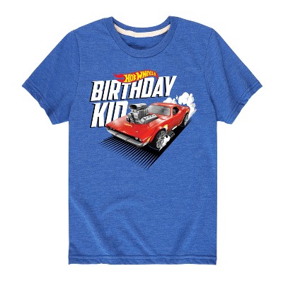 Hot Wheels - Happy Birthday To Me - Toddler And Youth Short Sleeve Graphic T-Shirt - Speed into bold style with Hot Wheels graphic apparel, featuring high-octane designs that showcase legendary cars like the Twin Mill, Bone Shaker, and other fan favorites. Each piece captures the adrenaline-pumping excitement of epic tracks, jaw-dropping stunts, and non-stop racing action. Perfect for fans of all ages who grew up launching cars off orange tracks and collecting miniature speed machines, this collection brings the thrill of Hot Wheels to your everyday look with energy, nostalgia, and unmistakable style.