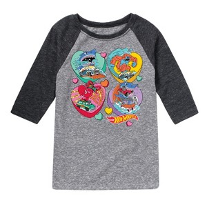 Hot Wheels - Monster Racing Hearts - Toddler & Youth Raglan Graphic T-Shirt - Speed into bold style with Hot Wheels graphic apparel, featuring high-octane designs that showcase legendary cars like the Twin Mill, Bone Shaker, and other fan favorites. Each piece captures the adrenaline-pumping excitement of epic tracks, jaw-dropping stunts, and non-stop racing action. Perfect for fans of all ages who grew up launching cars off orange tracks and collecting miniature speed machines, this collection brings the thrill of Hot Wheels to your everyday look with energy, nostalgia, and unmistakable style.