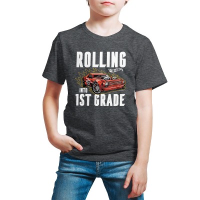 Hot Wheels - Rolling Into 2nd Grade - Youth Short Sleeve Graphic T-Shirt - Speed into bold style with Hot Wheels graphic apparel, featuring high-octane designs that showcase legendary cars like the Twin Mill, Bone Shaker, and other fan favorites. Each piece captures the adrenaline-pumping excitement of epic tracks, jaw-dropping stunts, and non-stop racing action. Perfect for fans of all ages who grew up launching cars off orange tracks and collecting miniature speed machines, this collection brings the thrill of Hot Wheels to your everyday look with energy, nostalgia, and unmistakable style.