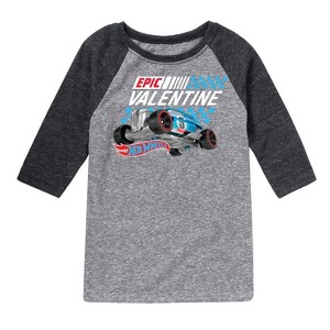 Hot Wheels - Valentine's Epic - Toddler And Youth Raglan Graphic T-Shirt - Speed into bold style with Hot Wheels graphic apparel, featuring high-octane designs that showcase legendary cars like the Twin Mill, Bone Shaker, and other fan favorites. Each piece captures the adrenaline-pumping excitement of epic tracks, jaw-dropping stunts, and non-stop racing action. Perfect for fans of all ages who grew up launching cars off orange tracks and collecting miniature speed machines, this collection brings the thrill of Hot Wheels to your everyday look with energy, nostalgia, and unmistakable style.