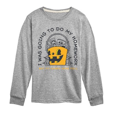 Instant Message - Homework Ghost - Toddler & Youth Long Sleeve Graphic T-Shirt - Instant Message is an online specialty fashion retailer for everything from funny to inspiring printed apparel. We offer a range of garments from long sleeve and relaxed fit t-shirts, to lightweight french-terry long sleeve shirts, hoodies and graphic print pullovers. Our products feature fun and trendy graphics that are perfect for any occasion and also make great gifts.