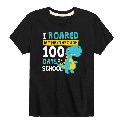 Boys' Instant Message I Roared 100 Days School Short Sleeve Graphic T-Shirt - Heather Blue - Medium